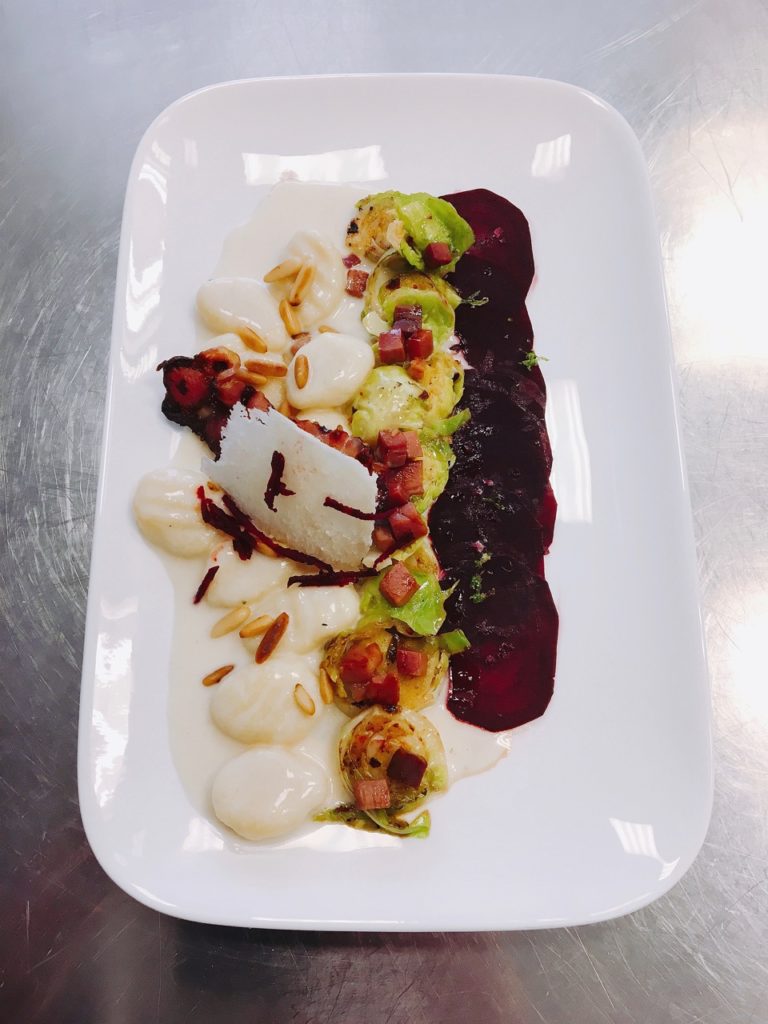 Gnocchi mit Weißweinsauce, Rosenkohl und roter Bete