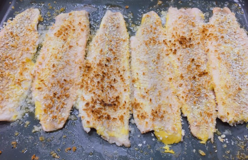 Lachsforellenfilet mit Senf-Panko-Kruste