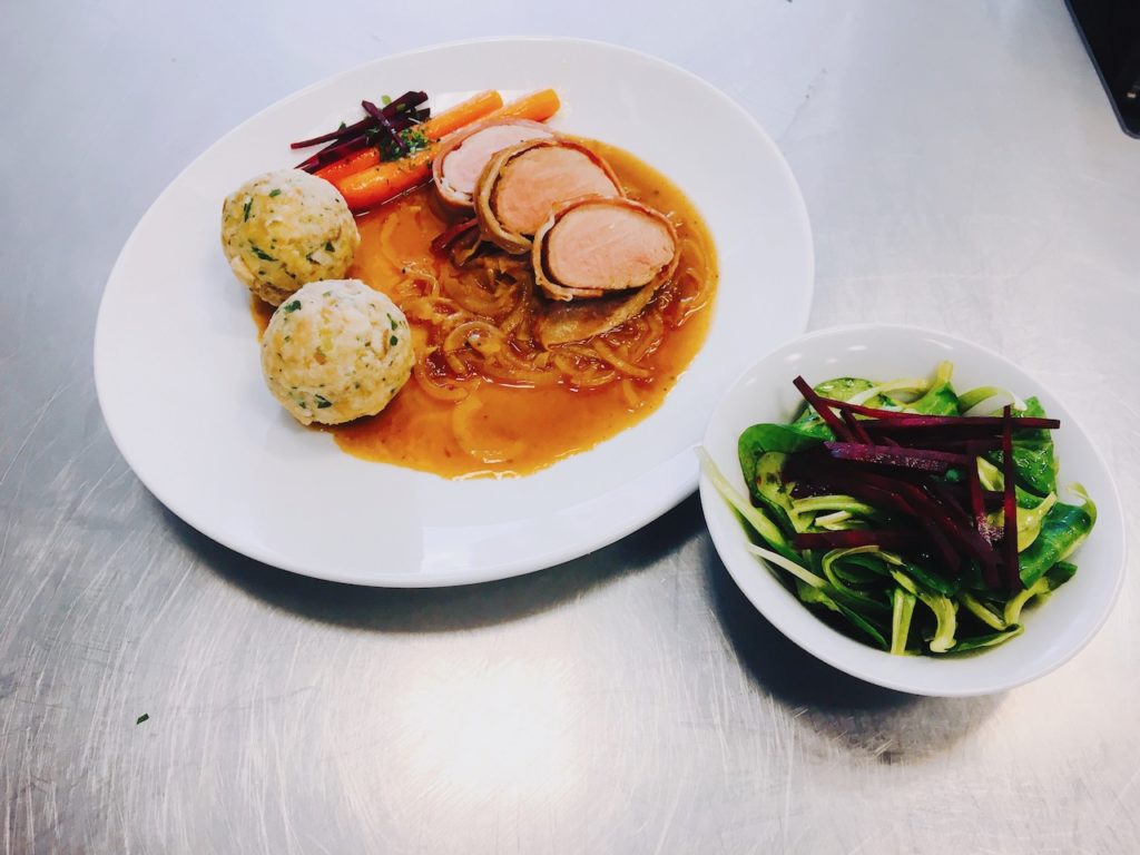 Schweinefilet mit Zweibelsauce und Semmelknödel