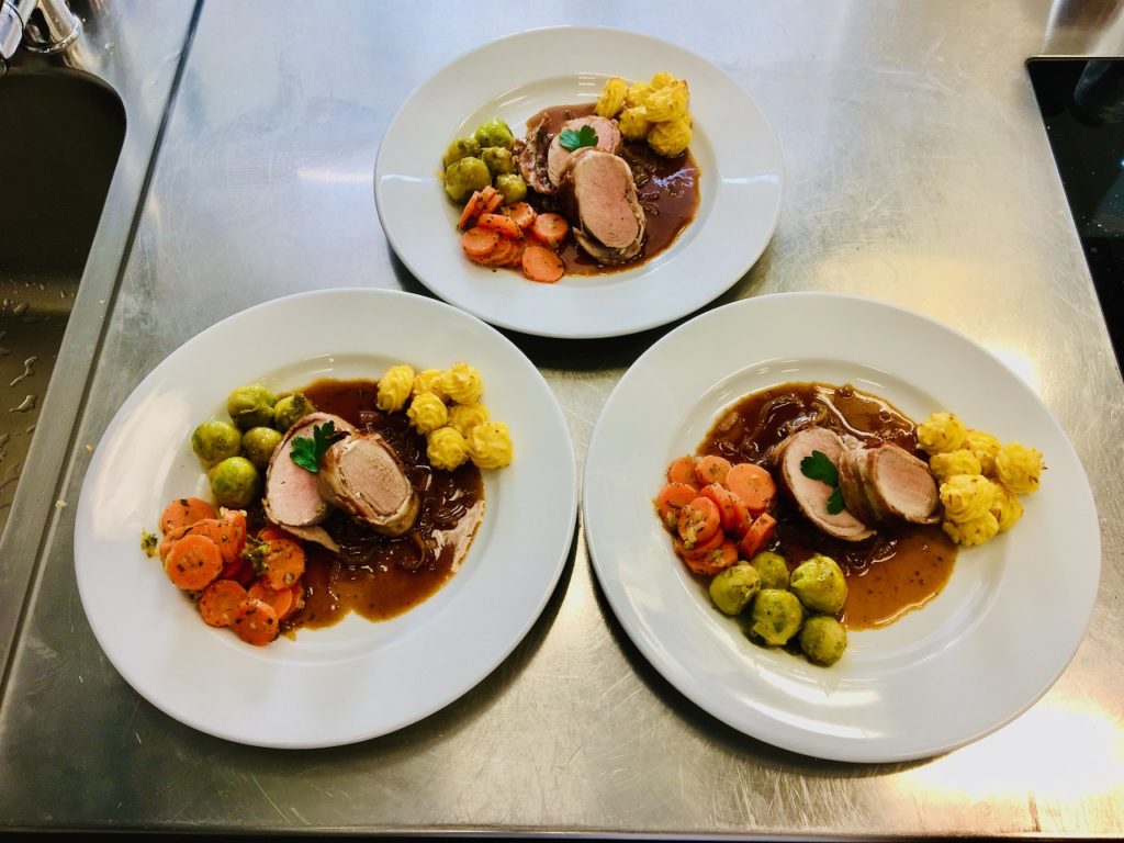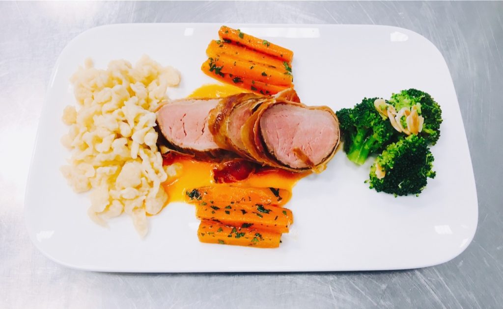 Schweinefilet mit Rosenkohl und Karotten