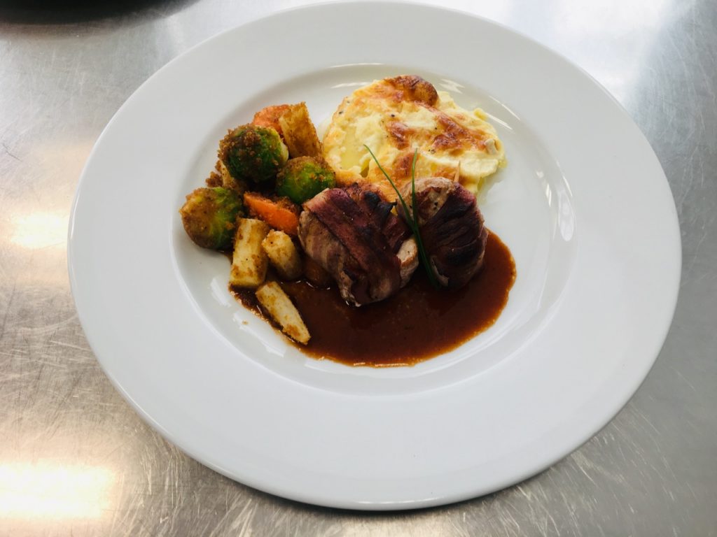 Schweinefilet im Speckmantel mit Kartoffelpüree