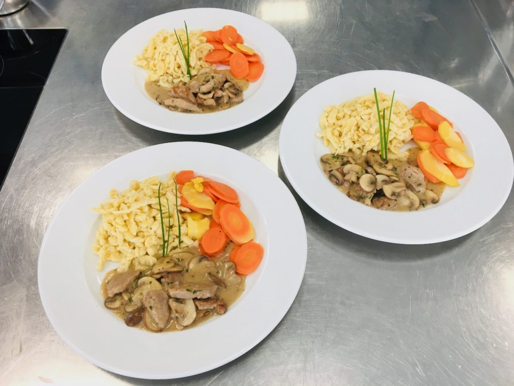 Geschnetzeltes mit Champignonsauce und Spätzle