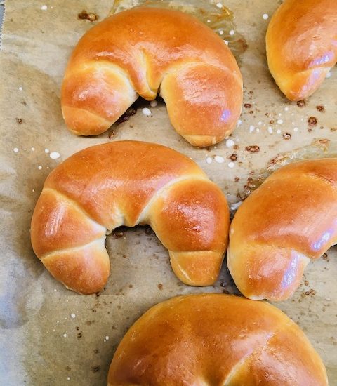 direkt nach dem Backen- heiß – erneut mit Milch bestreichen
